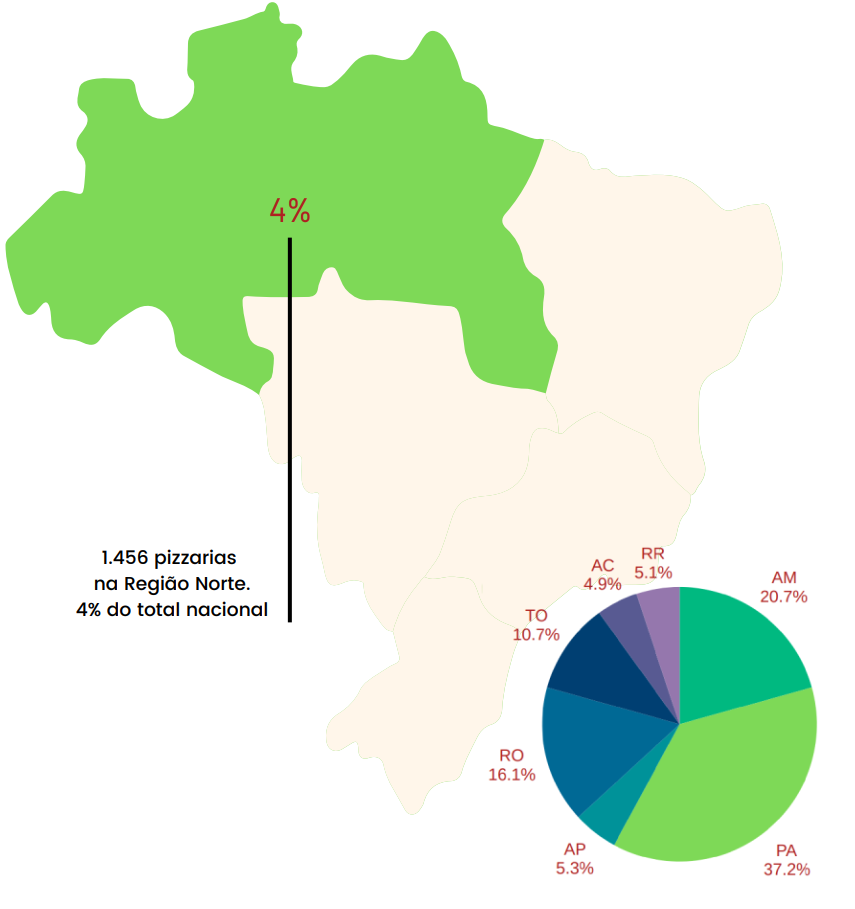 - Embora São Paulo concentre o maior número de pizzarias ativas no país, os maiores crescimentos percentuais estão nos estados do Norte e Nordeste.