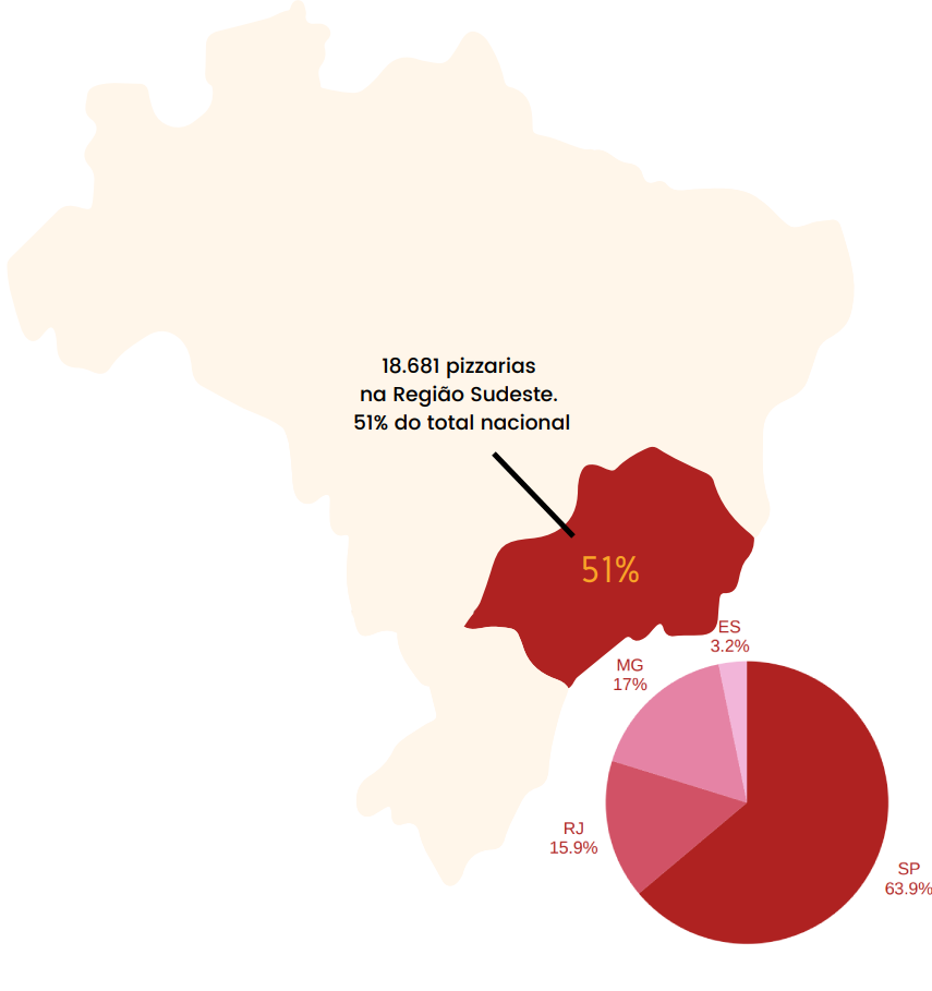 A análise das 36.568 pizzarias em operação no Brasil revela uma forte concentração no Sudeste, mas também aponta a presença significativa do setor em todas as regiões.